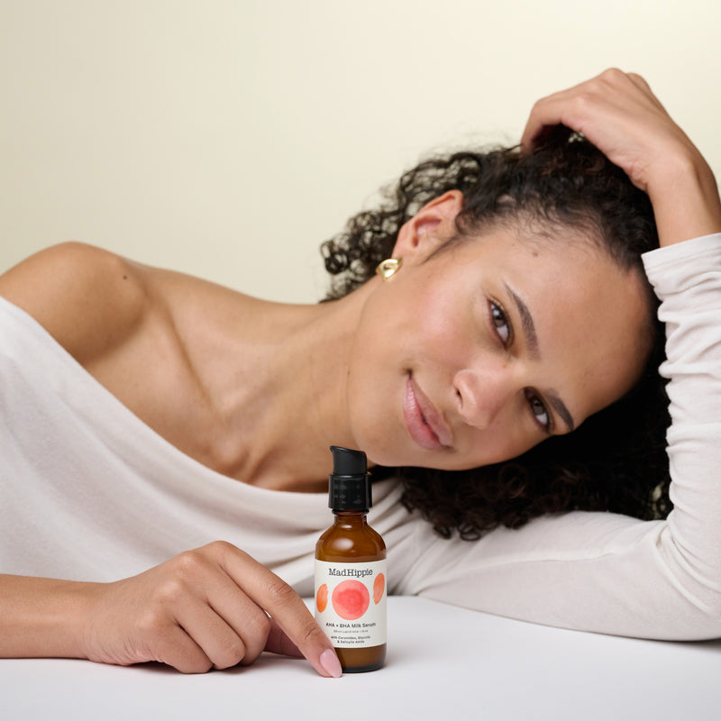 Powered by glycolic, lactic, and salicylic acids, this silky milk formula visibly smooths texture, refines pores, and helps even skin tone.