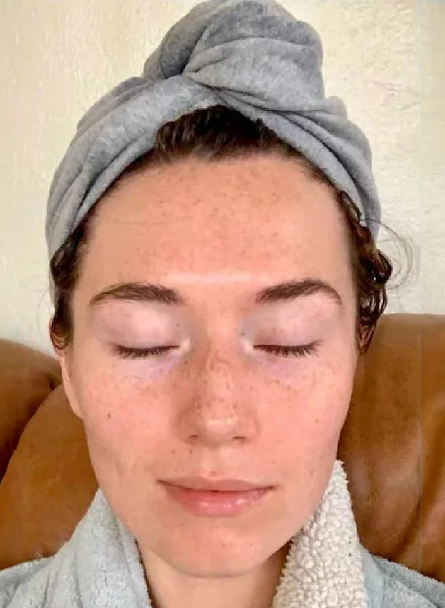 Use 2-3 drops of the AHA Exfoliating Peel or Super A Serum, massaging it onto freshly washed skin.